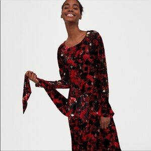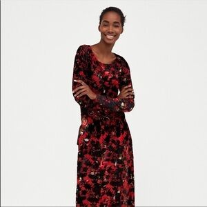 ZARA DEVORE VELVET FLORAL MIDI DRESS