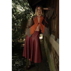 V-neck cardigan with long sleeves. Ribbed trims. Front button fastening.