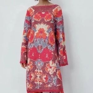 Beautiful Zara dress.... with partial tags on it LOL.... slit on the side for leggings.... just a really cute colorful outfit! I'm not sure if the material is all wool or partial wool. One size fits all?
