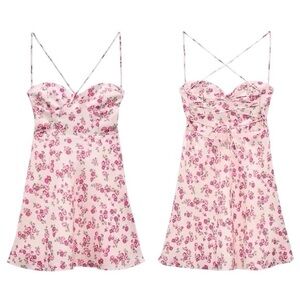 NWT women’s size XS ZARA Dainty Floral Linen Fit & Flare Strappy Mini Dress