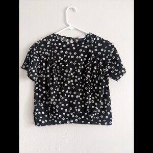 Brighten up any outfit with this adorable daisy print crop top from ZARA! Perfect for adding a touch of whimsy to your wardrobe, this top features a playful black and white daisy pattern, short sleeves, and a comfortable, breathable fabric. The relaxed fit and cropped length make it ideal for pairing with high-waisted jeans, skirts, or shorts. While I think this is technically a girls shirt, I am wearing it as a crop top.