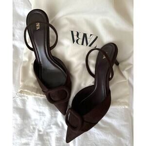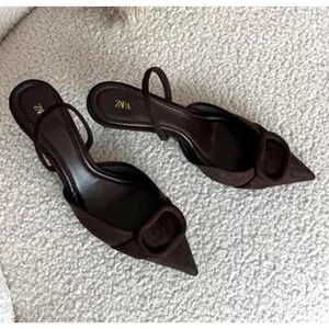 ZARA Dark Brown Pointed Toe Slingback Heels NWT Size 6.5
