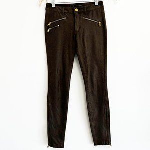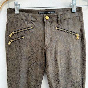 ZARA Dark Green Snakeskin Skinny Pants with Gold Zipper Details