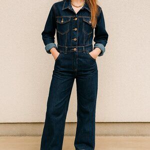 ZARA Denim Blue Jean Jumpsuit Union Suit Women's Size Medium NWOT Cotton
