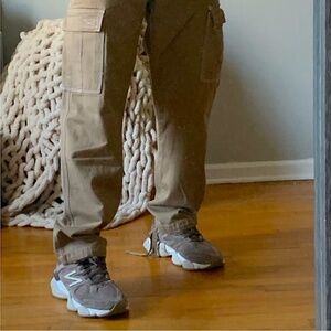 Great looking, sturdy Zara Man Contrast Topstitching Cargo Pants in Brown (model photos are the same pants in black...no photos of them in brown aside from one).