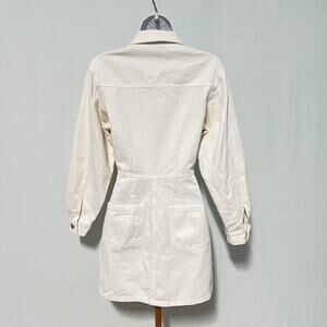 ZARA Denim Mini Dress Button Front Long Sleeve Collared Fitted XS White Cotton