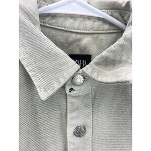 ZARA Denim Shirt Jacket Men’s Size S Light Gray Distressed Casual Button Up