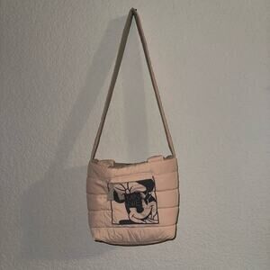 ZARA Disney Minnie Mouse Reversible Mini Puffer Tote Pink Gray Shoulder Strap