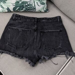 ZARA Distressed Black Hi Rise Denim Shorts 8
