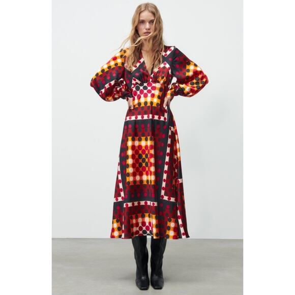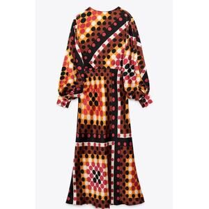 ZARA Dot Matrix Multicolor Print Midi Long Dress, Size: XS