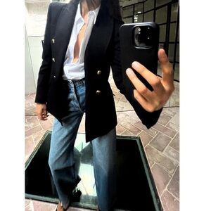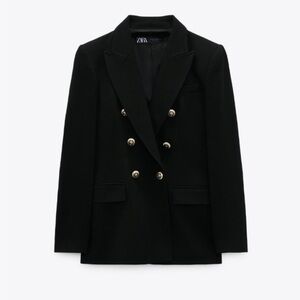 ZARA Double Breasted Blazer Jacket Black Blogger Favorite Size Small S