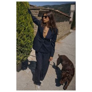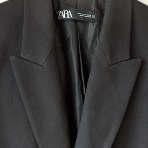 ZARA Double Breasted Blazer Women's sz M Black Suit Business Casual Corpcore