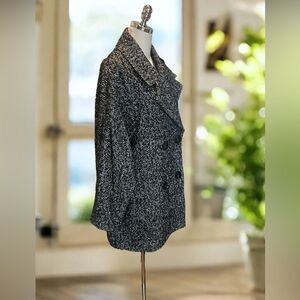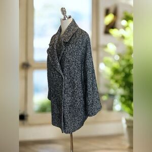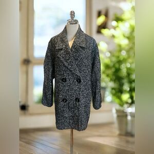 ZARA Double Breasted Herringbone Tweed Wool Coat Overcoat Size M L
