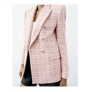 ZARA Double Breasted Textured Weave Blazer in Barbie Pink Size Large