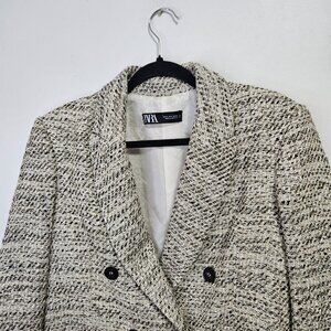 ZARA Double Breasted Tweed Blazer Jacket Sz S Neutral
