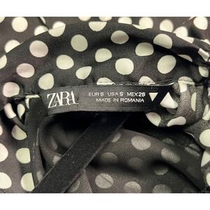 ZARA Dress Black With White Polka Dots, Neck Tie, Full Sleeves, Sz S