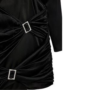 ZARA Dress Jewel Buckle Black Satin Size S BLOGGER FAVORITE• NEW WITH TAGS •