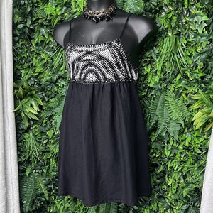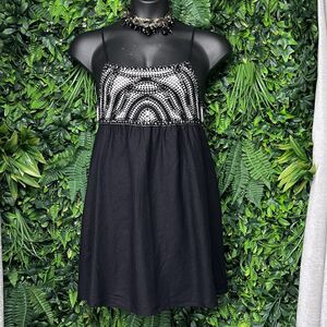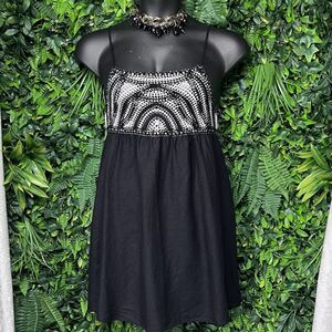 ZARA Dress Women Large Black Beige Mini Linen Blend Crotchet Boho 2227