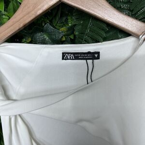 This stunning ZARA dress is perfect for any occasion. The white, mini, bodycon style with one shoulder neckline and pleated, layered accents creates a chic and elegant look. The dress is made of a blended fabric of polyester and features a zip closure, making it comfortable and easy to wear. The dress is XS in size and has a regular fit. It is suitable for weddings, parties, cocktail events, and more. The dress is lined and has stretch features for added comfort. The cut out, ruched details add a touch of uniqueness to the dress, making it perfect for any fashion-forward woman.