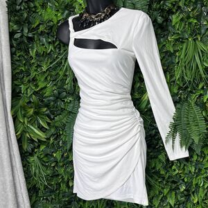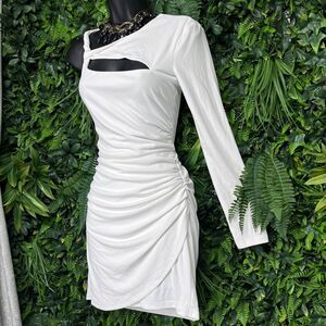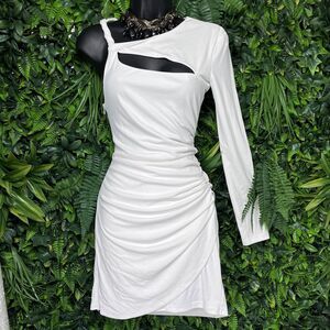 ZARA Dress Women XS White One Shoulder Mini Ruched Cut Out Party 1928