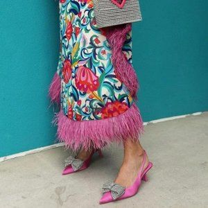ZARA EMBELLISHED RHINESTONE BOW SLINGBACK SHOES
