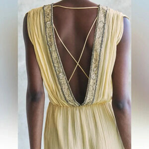 ZARA EMBROIDERED BEADED PASTEL YELLOW DRESS ZW COLLECTION