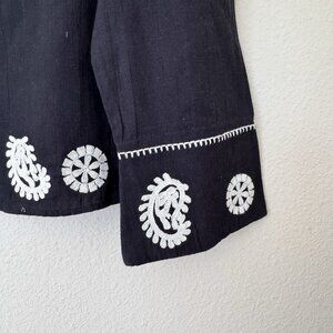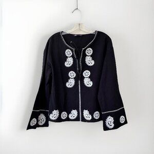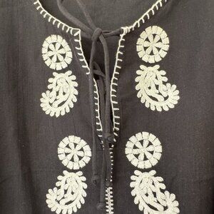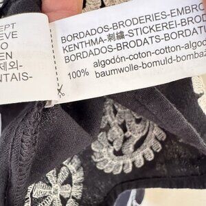 ZARA EMBROIDERED COTTON BLOUSE BLACK TIES Medium Cotton Lightweight