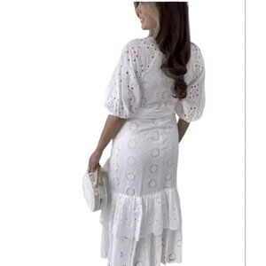 ZARA EMBROIDERED DRESS WITH STRING BELT IN OYSTER WHITE SUMMER WHITE SIZE S