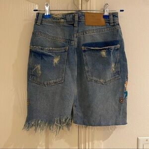 ZARA EMBROIDERED ASYMMETRIC DENIM SKIRT SIZE XS
