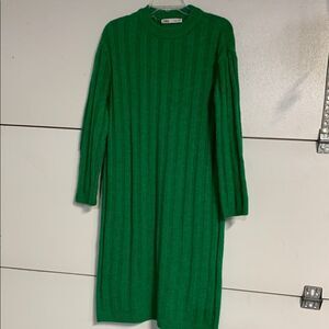 ZARA EMERALD GREEN RIBBED MIDI SWEATER DRESS SMALL