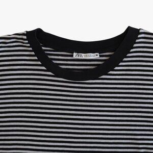 ZARA | "ENZYME FINISH" 100% COTTON BLACK AND WHITE STRIPED T-SHIRT