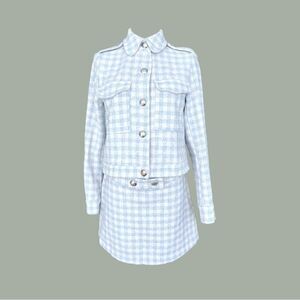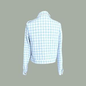 ZARA EUC textured Tweed Jacket in Powder-Blue Gingham Size M
