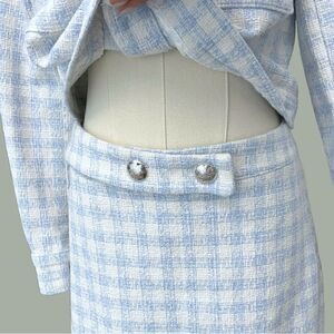ZARA EUC textured Tweed Skort in Powder-Blue Gingham Size L