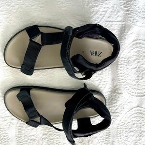 Zara Excellent Condition men sandals with strap closure. Very comfortable and well made, it has a small nick at the heel. As shown in photo. Great for walking and more. Great choice for casual wear. Pre owned with little wear.