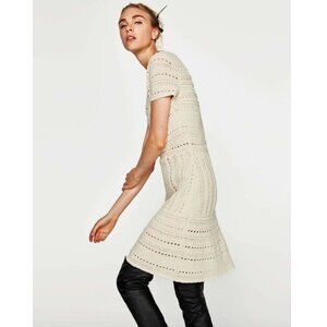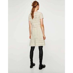 ZARA Ecru Crochet Knit Short Sleeve Dress Chic Large