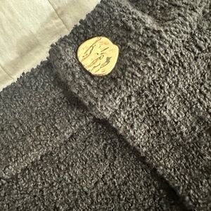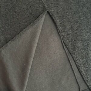 Chic black maxi skirt with a textured finish. Features a front slit for added style. Perfect for versatile wear.