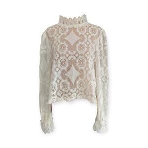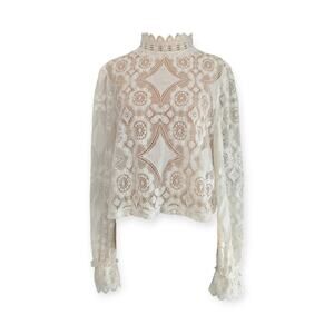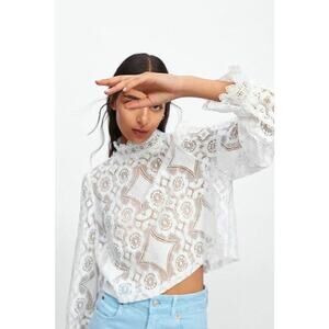 ZARA Elegant Lace Crochet Blouse with Lantern Sleeve