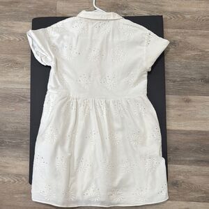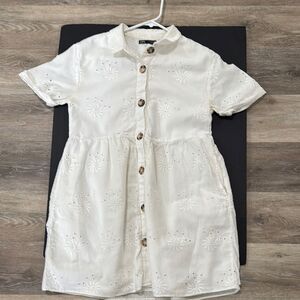 This elegant white kids dress features charming button details and delicate embroidery, perfect for any special occasion.