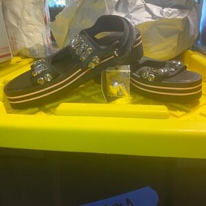 ZARA Embellished Platform Sandals Black Rhinestone Buckle Comfort Women Size 40