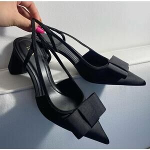 Black slingback shoes with block heels. Bow detail at front. Back strap. From ZARA, in US size 8 (EUR 39), 9 (EUR 40), and 10 (EUR 41)