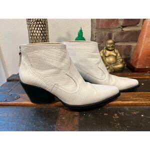 ZARA Embossed Croc White Western Cowboy Boots 37