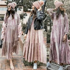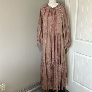 ZARA Embroidered Beaded Tie Dye Dusky Pink Boho Maxi Tiered Dress Sz M NEW