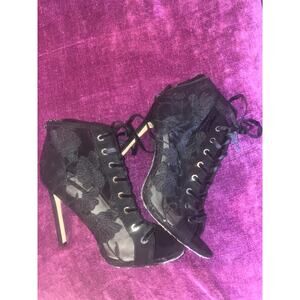 ZARA Embroidered Mesh Lace Up Boot GOTH WHIMSIGOTH INDIE SLEAZE Size 37 7 Black
