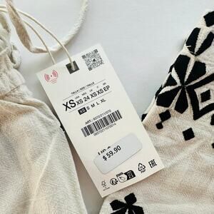 ZARA Embroidered Wide Leg Linen Blend Pant Cream Black NEW Size XS