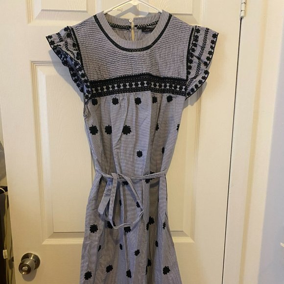 ZARA Eyelet & Embroidery Tie Waist Flutter Sleeve Dress