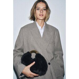 ZARA FAUX FUR HANDBAG WITH METAL HANDLE