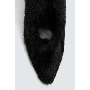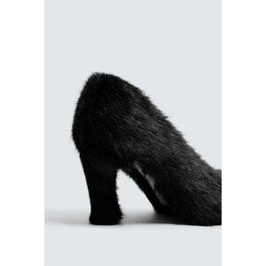 Heeled shoe with faux fur detailing on the top. Pointed toe.