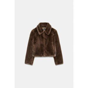 ZARA FAUX FUR SHORT COAT WITH TOGGLE FASTENERS