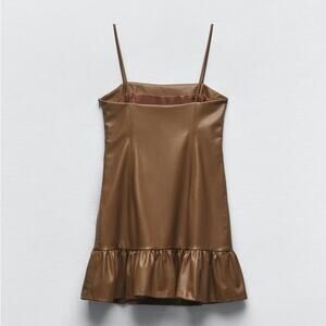 ZARA FAUX LEATHER DRESS LIGHT BROWN