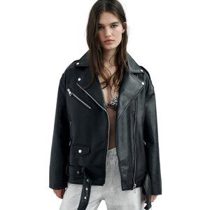 ZARA FAUX LEATHER OVERSIZE JACKET BLACK SIZE | 4341 911 7901 991